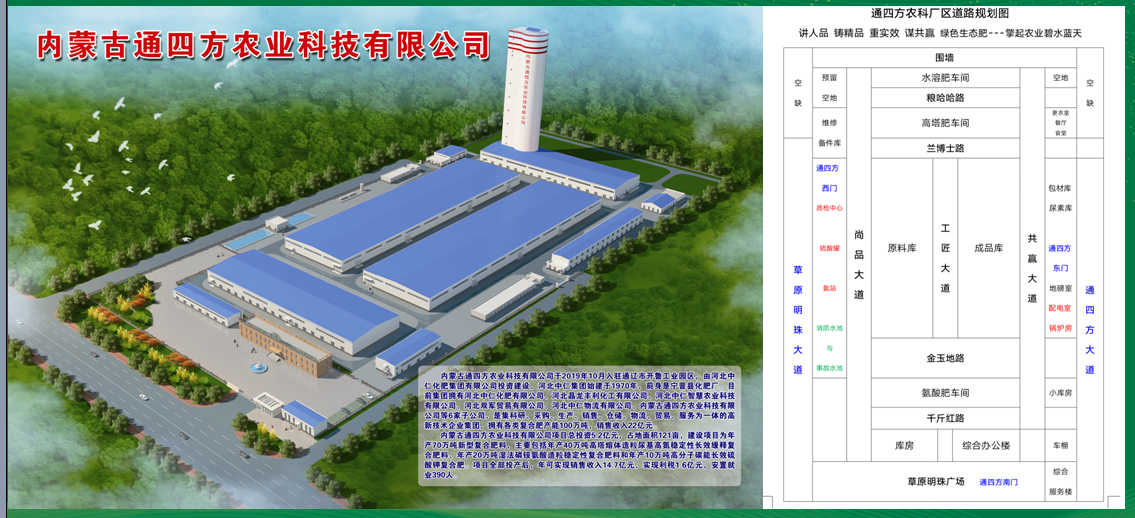 內(nèi)蒙古通四方農(nóng)業(yè)科技有限公司(以下簡(jiǎn)稱通四方農(nóng)科)是河北中仁集團(tuán)在通遼市開(kāi)魯縣投巨資建設(shè)的東四省重點(diǎn)生產(chǎn)基地,是開(kāi)魯縣2019年度重點(diǎn)招商引資項(xiàng)目,2020年通遼市化肥行業(yè)龍頭企業(yè),內(nèi)蒙古自治區(qū)政府重點(diǎn)扶持涉農(nóng)企業(yè)。
